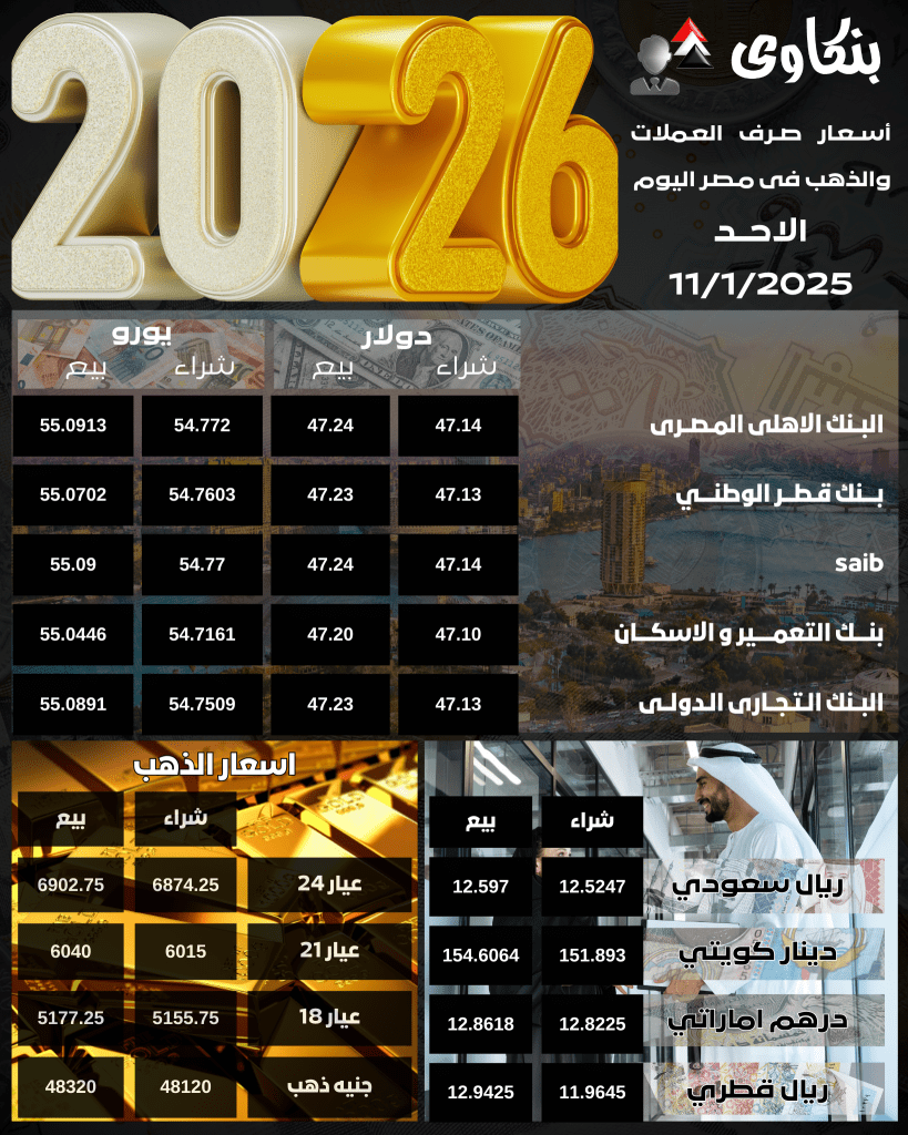 تعرف على اسعار العملات والذهب اليوم الاحمد 11 يناير 2026