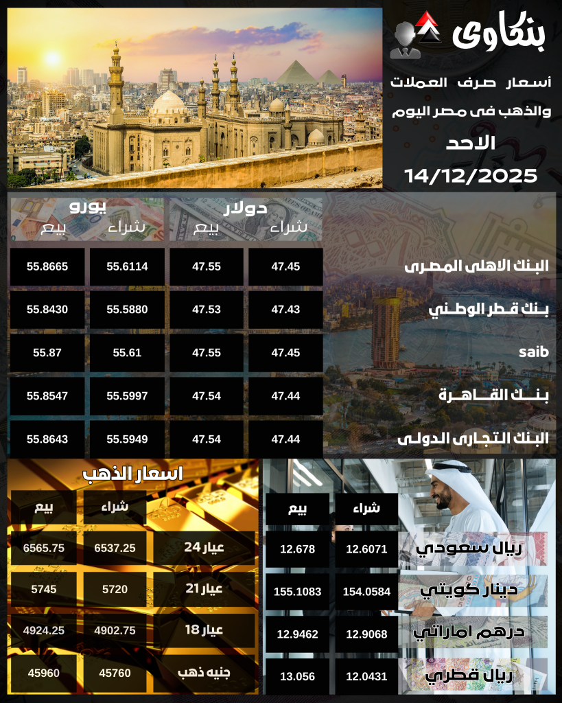 تعرف على اسعار العملات والذهب اليوم الاحد 14 ديسمبر 2025
