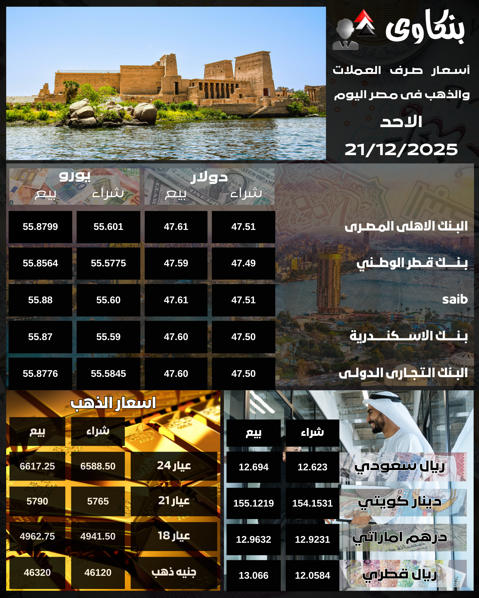 تعرف على اسعار العملات والذهب اليوم الاحد 21 ديسمبر 2025