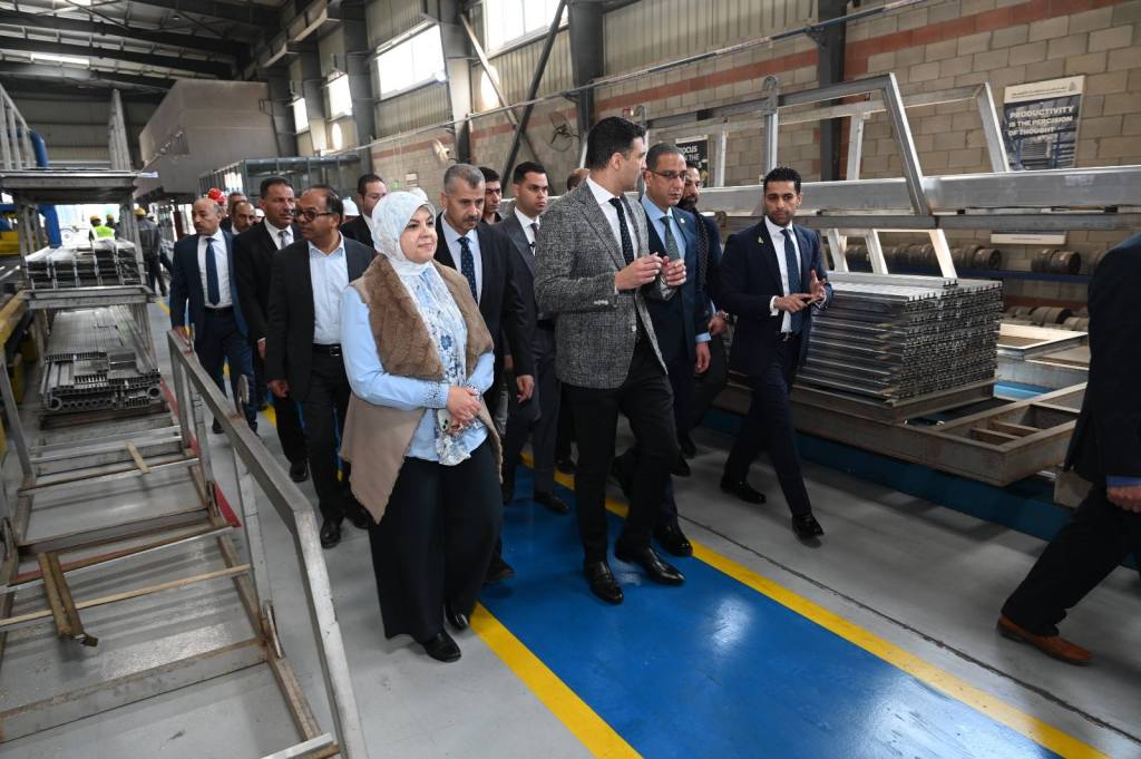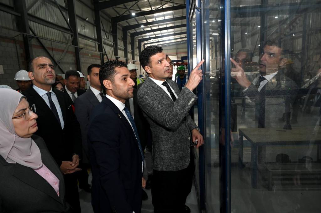 وتفقد هاشم خطوط إنتاج الزجاج المعماري عالي الأداء بمصنع “دلمار”، حيث تابع سير العمل على أحدث ماكينات التقسية والزجاج المزدوج والقطع والتشطيب المؤتمتة، واطلع على عمليات إنتاج الزجاج المزخرف باستخدام الطباعة الأسطوانية، بالإضافة إلى مجموعة قطاعات الألومنيوم المنتجة بالمصنع، بما في ذلك الزوايا، القضبان، الأنابيب، المستطيلات، والصفائح المسطحة.
